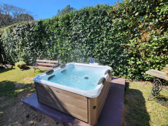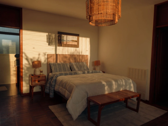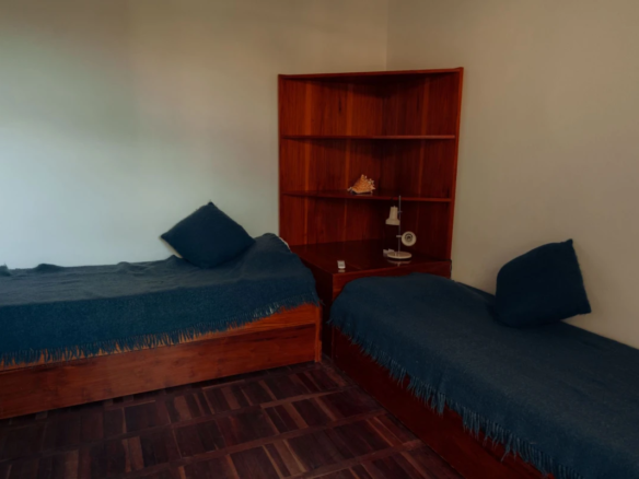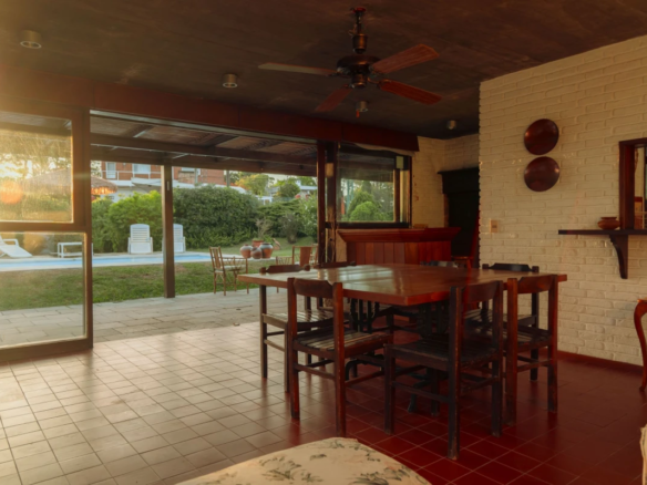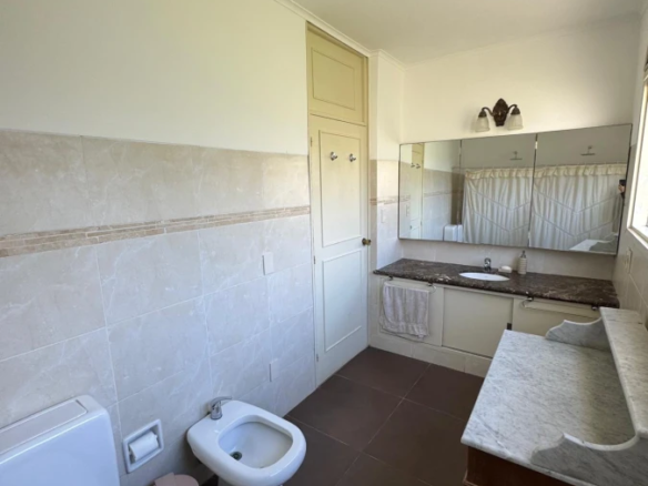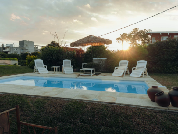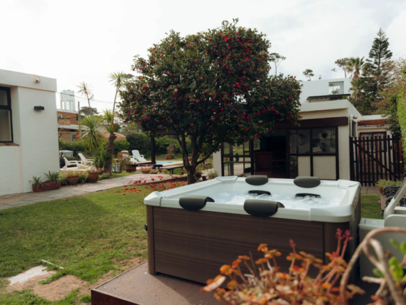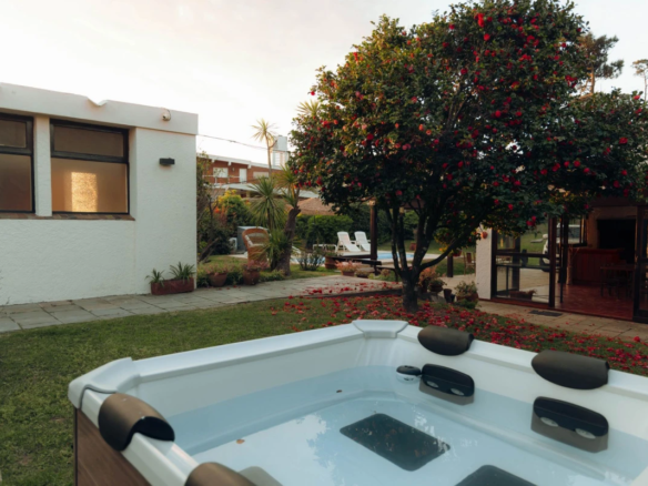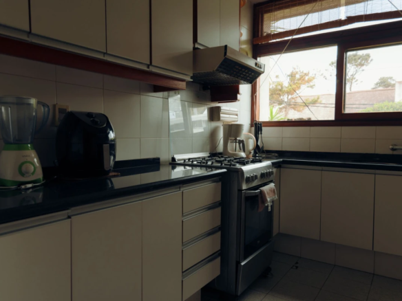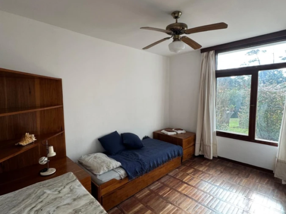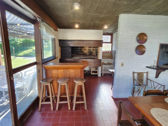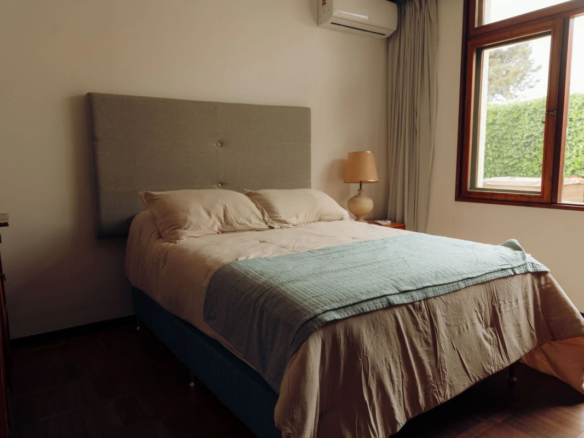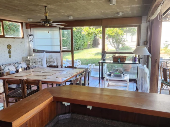 La propiedad cuenta con 3 dormitorios en suite, dos con cama matrimonial y uno con camas marineras, más dependencia de servicio con baño, alcanzando una capacidad total para 10 personas. Dispone de 5 baños, amplio living-comedor con salida al jardín, cocina totalmente equipada, lavadero y área de servicio.